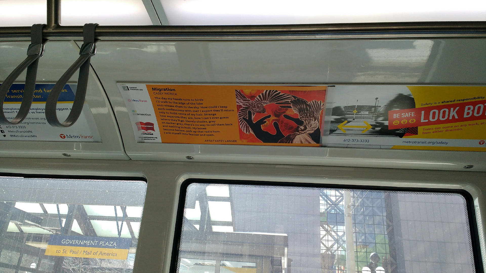 Featured works graced the inside of 100 trains and buses, bus kiosks, and train station platforms. The poem I was tasked with illustrating was this lovely piece written by local author, Casey Patrick.